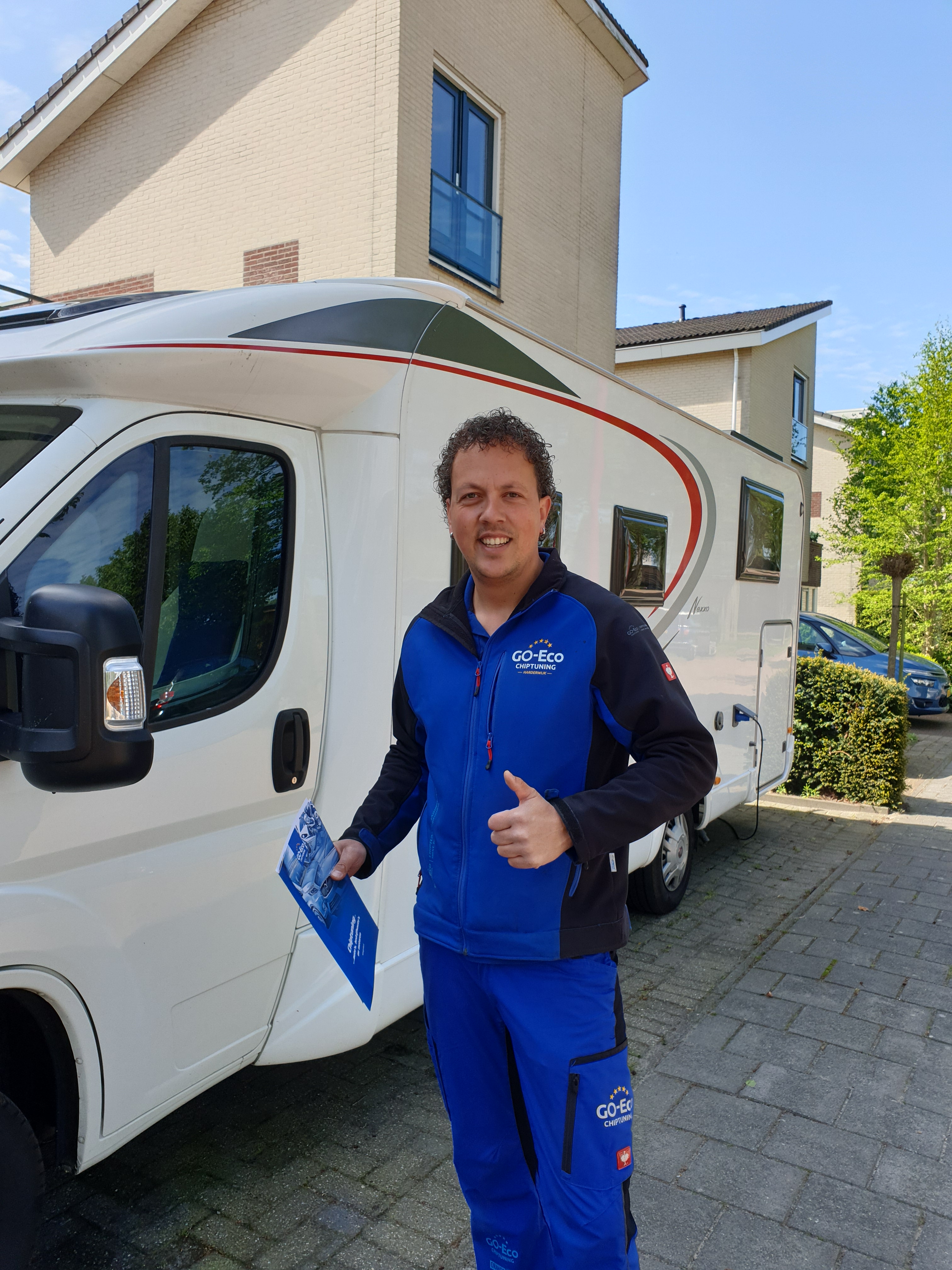 De vele aanbieders pretenderen allemaal de beste software te hebben gemaakt voor de meest smooth-lopende motoren van de Fiat-Ducato serie. Na wat belletjes te hebben gemaakt en websites bezocht, kwam ik bij Go-Eco Chip-Tuning Harderwijk uit. Overzichtelijke website, goede reviews op de site, maar ook op forum’s en contactformulier ingevuld met de wens om mij te benaderen. Dit gebeurde maandag direct door een keurige bevlogen heer, Bryan Reyneke. Deze overtuigde mij zo goed onderbouwd, dat ik besloot om de afspraak maar te maken. Nu was ook nog het toeval dat hij in Lelystad, mijn woonplaats, op dat moment net klaar was met een andere klus en direct kon langskomen. Huh?? Hoef ik niet naar een garage of zoiets? Nee, hoor! Kan gewoon bij je voor de deur. Aangezien de camper bij ons op de oprit staat, kon het dus meteen uitgevoerd worden. Klasse! Ik blijf natuurlijk een klein kind waar het gaat om toys for boys, gadgets en alles wat op wielen gaat. Wil het meteen hebben.